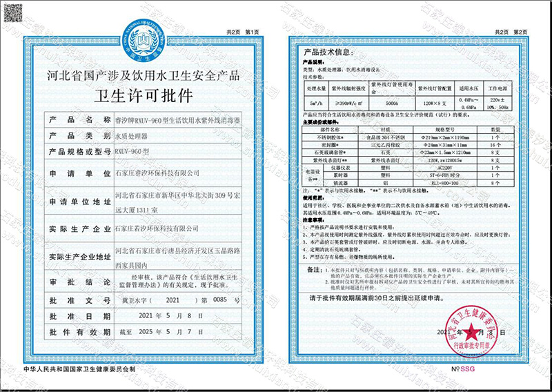 - 石家莊睿汐環(huán)??萍加邢薰緞?chuàng)建于2015年,公司是多家知名企業(yè)的設(shè)計(jì)、研發(fā)合作伙伴,是具有技術(shù)開(kāi)發(fā)、設(shè)備研制、設(shè)計(jì)、施工于一身的科技企業(yè)。公司是以科研、制造、銷(xiāo)售為基礎(chǔ),主要研制生產(chǎn)紫外線(xiàn)消毒器,中壓紫外線(xiàn)消毒器,AOT紫外線(xiàn)水質(zhì)處理器,明渠紫外線(xiàn)消毒器,銀離子消毒器,水箱自潔消毒器,電子水處理儀器等各種消毒設(shè)備。公司始終堅(jiān)持誠(chéng)信執(zhí)業(yè),以人為本,信譽(yù)至上,本著“質(zhì)優(yōu)價(jià)廉,方便快捷”的原則,不斷提升公司競(jìng)爭(zhēng)力,向規(guī)模化、專(zhuān)業(yè)化發(fā)展,努力成為消毒器行業(yè)的領(lǐng)軍者。...